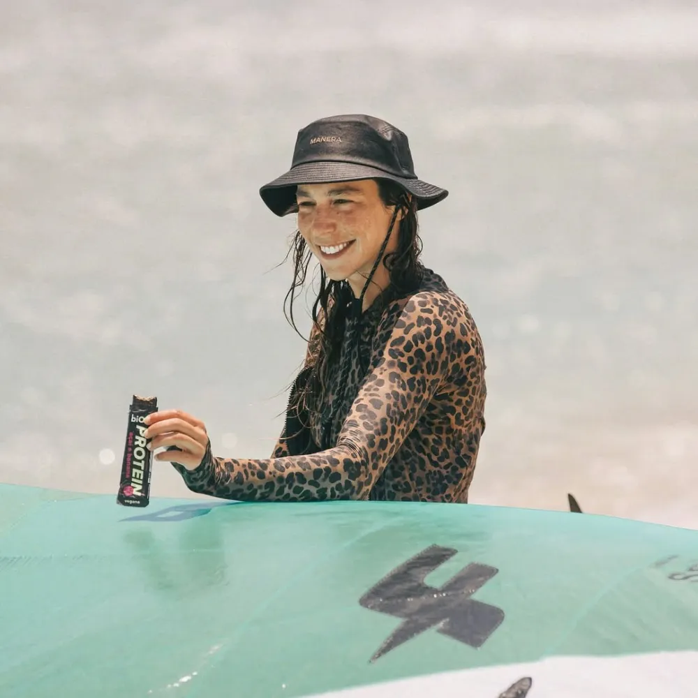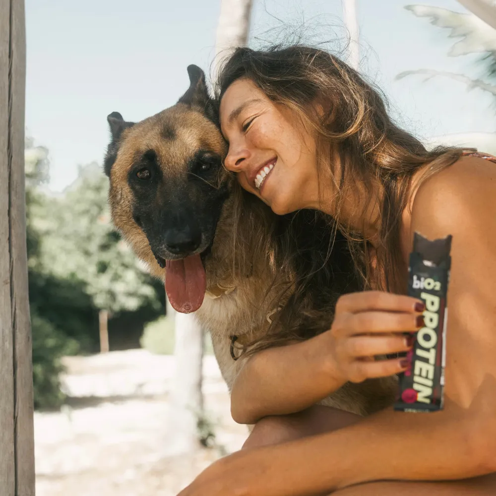Extrato de malte, mix de proteínas vegetais (ervilha e arroz), cobertura sabor chocolate meio amargo, pasta de amendoim, farinha de amendoim, óleo de girassol, fibra vegetal, melado de cana orgânico, farinha de casca de uva orgânica, açaí em pó, banana em pó, sal marinho, espessante goma acácia, aromatizantes naturais e antioxidante tocoferol.