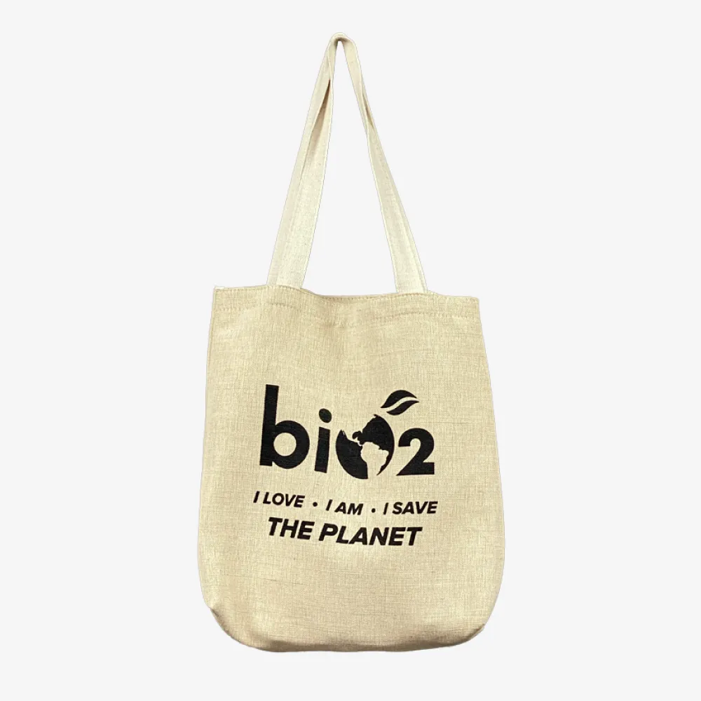 Ecobag de juta, material totalmente biodegradável e renovável, com tamanho perfeito para levar seus displays de biO2 Protein Bar para onde quiser. Natural, estilosa, resistente e prática!