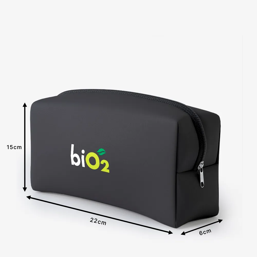 Nécessaire em neoprene preta bem espaçosa e maleável no formato box, que combina estilo e praticidade! Cabem cerca de 15 barrinhas biO2 variadas para você levar com você para onde for.