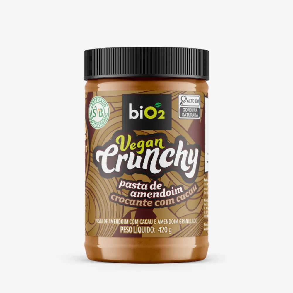 A biO2 Vegan Crunchy Pasta de Amendoim Crocante com Cacau 420 g é feita apenas com 2 ingredientes naturais: amendoim e cacau 100%, nada mais!