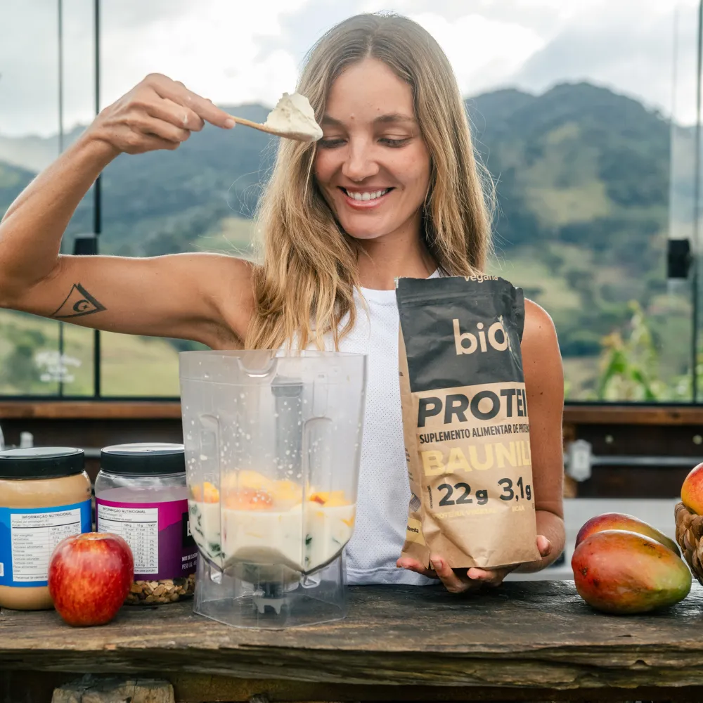 “Eu já experimentei várias proteínas vegetais, porém a maioria era cheia de químicos, conservantes e adoçantes artificiais. Quando conheci a proteína em pó da biO2 apaixonei. Ela não tem tanto gosto residual da proteína quanto as outras que provei e nem produtos químicos ou conservantes. Consumo ela sempre com frutas congeladas e o sabor doce dos meus shakes vem somente das frutas. Simplesmente fenomenal e sem erro 💛”