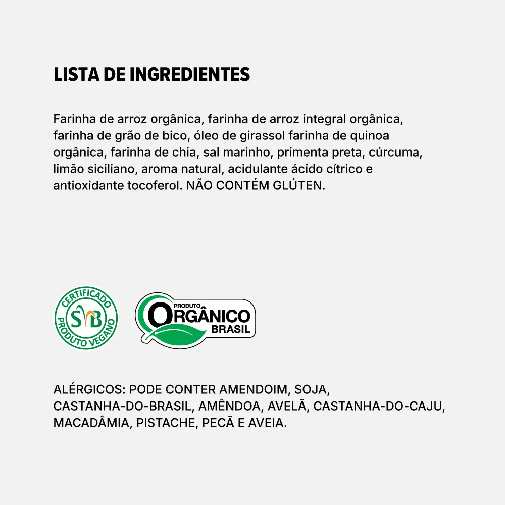 Um salgadinho assado, feito com ingredientes orgânicos, ideal para um lanchinho ou petisco.
